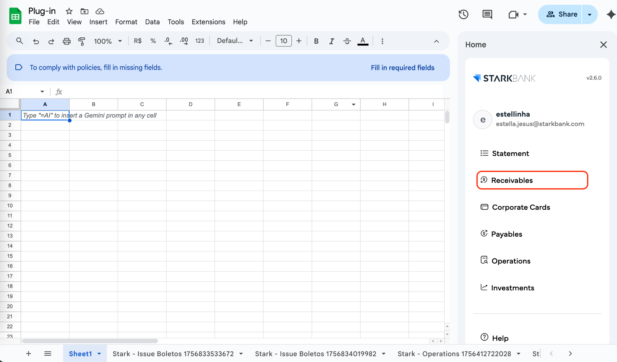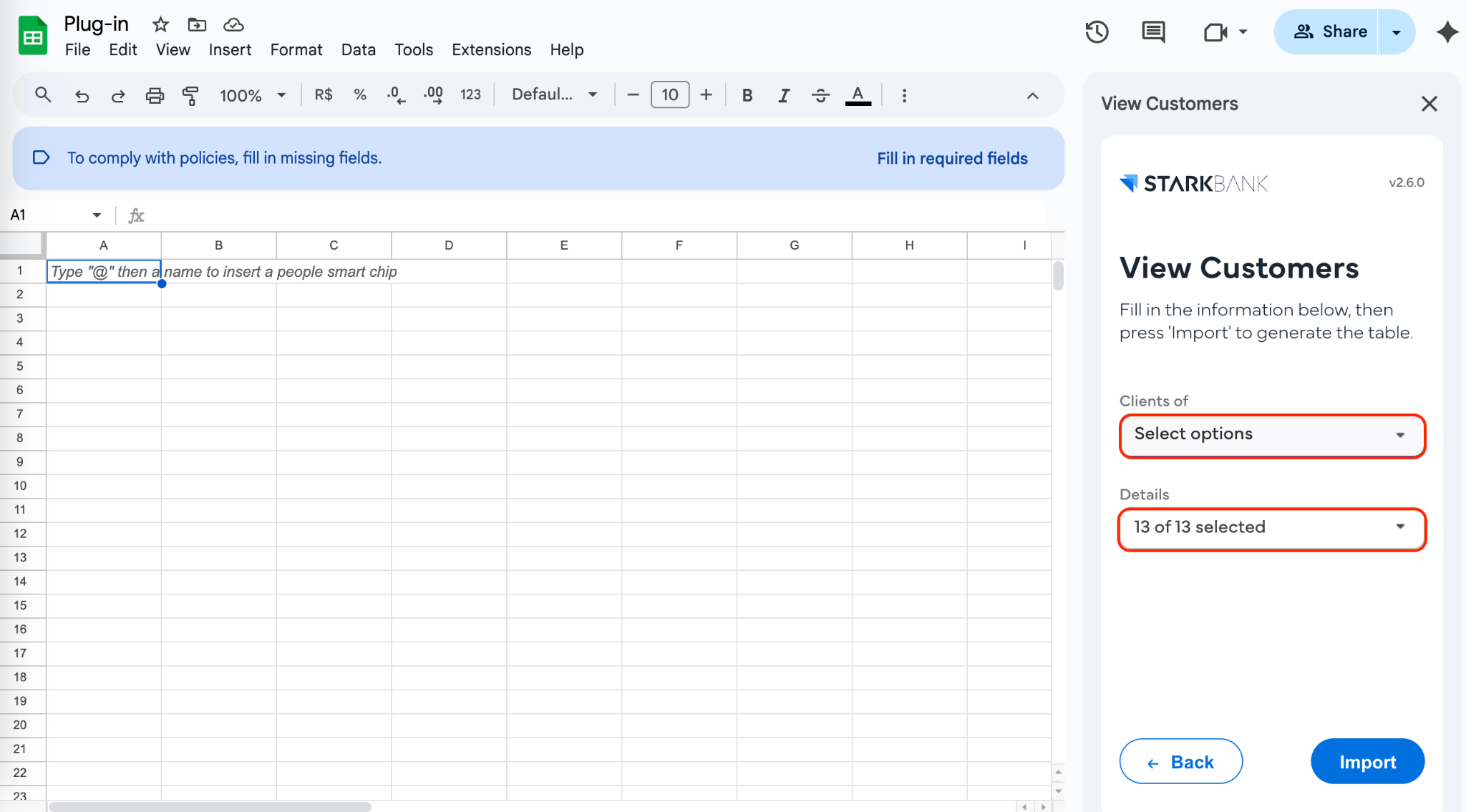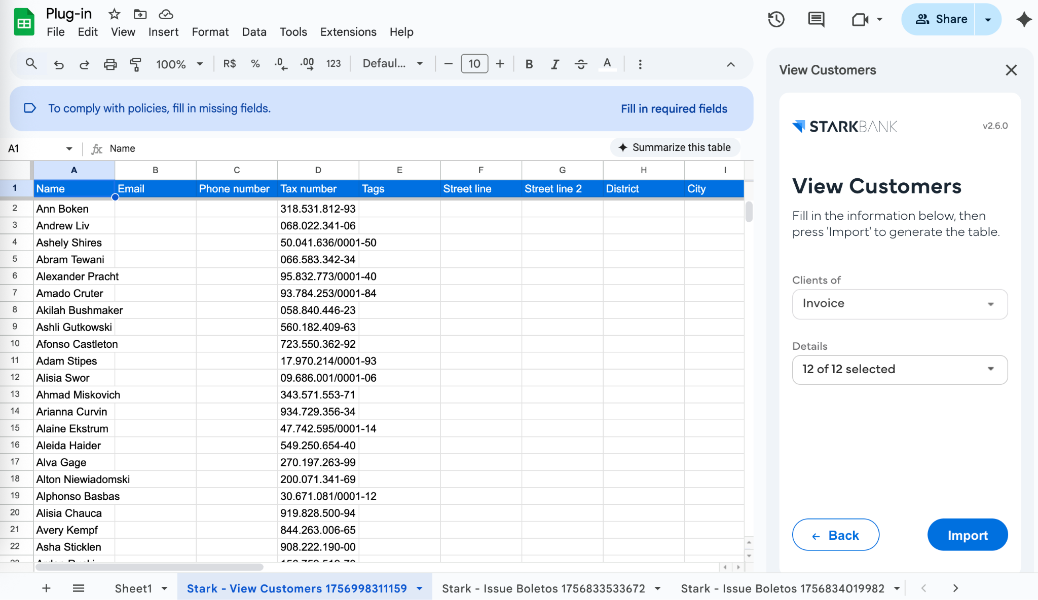 3. Selecione quais clientes quer ver: Boletos ou Invoices, selecione quais detalhes dos clientes gostaria de ver. Em seguida, clique em Importar: