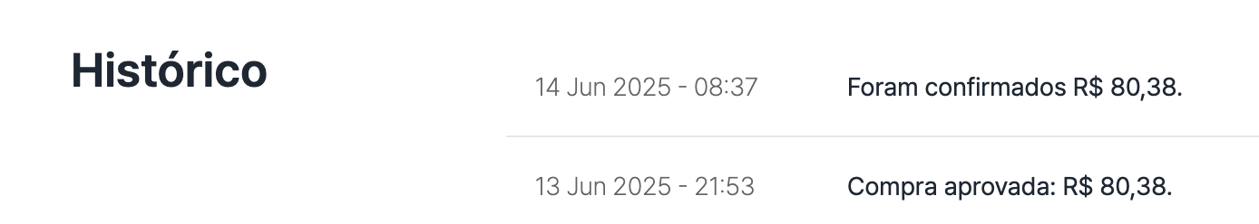 2.Status "Confirmado": É o status final. O estabelecimento envia o valor da compra para cobrança. A partir deste momento, a transação é processada e entra na sua fatura.