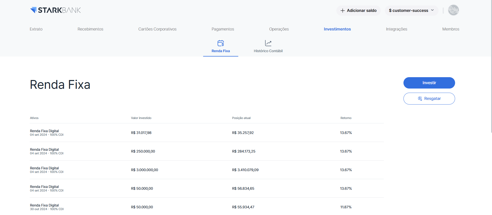 - O valor investido será debitado do seu saldo disponível no seu workspace;