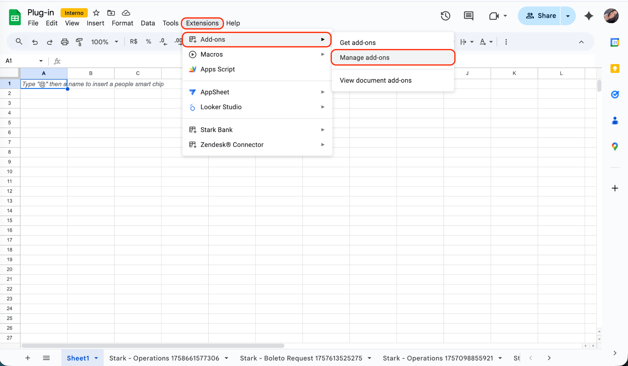 1. No menu superior, clique em Extensões;