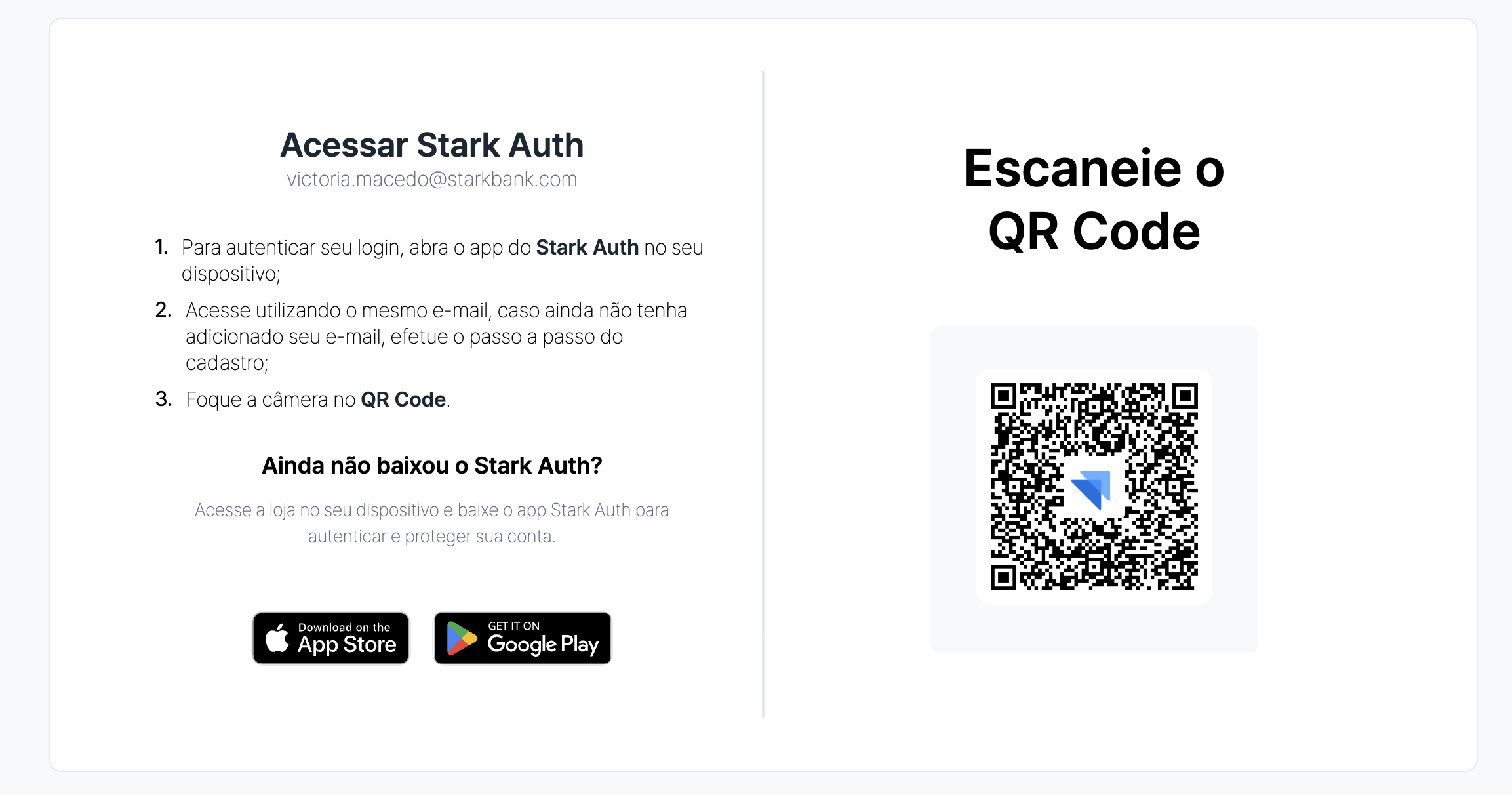 Use o aplicativo Stark Auth para escanear este QR Code e autenticar a operação.